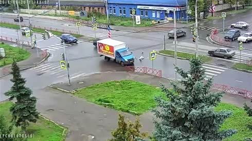 司机喝了吧 小货车顶飞路口等灯轿车