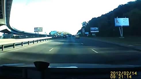 开车可别走神!实拍轿车追尾大货车