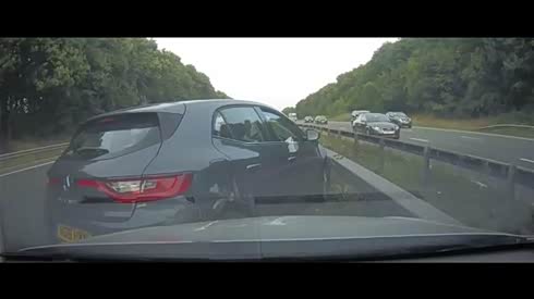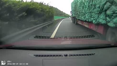违规超车 摄像车险被变道大货车挤扁
