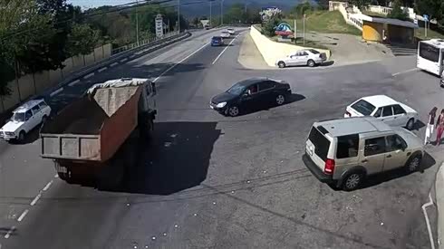 神级的躲闪 男子淡定躲过油罐车的冲撞