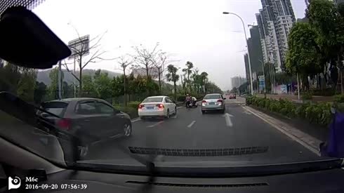 不会打转向灯 摩托车胡乱转弯险些追尾