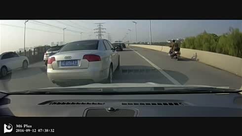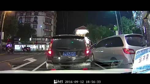 谁都走不了 实拍轿车强行加塞致剐蹭