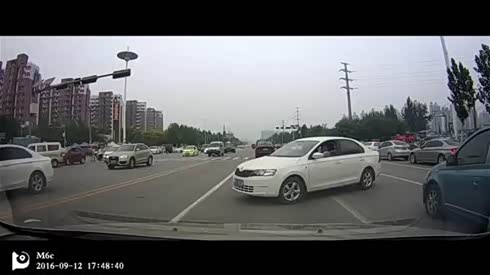 跳起芭蕾 路口实拍轿车拐弯失控撞上SUV