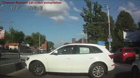 想往哪骑啊 轿车拐弯挂倒后侧摩托车