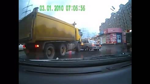 绿灯也危险 轿车过路口撞上闯红灯货车