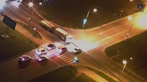 太无辜了 轿车路口失控侧滑撞上摄像车