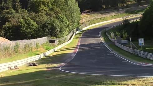人被摔惨了 纽北赛道摩托车弯道撞墙