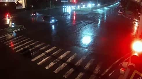 闯红灯的代价 路口两辆机动车严重碰撞