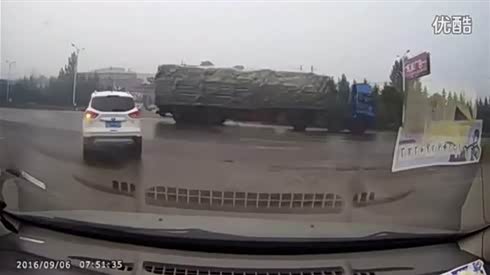 太大意了 实拍SUV左转时被大货车惨撞