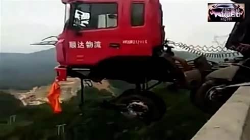 命悬一线!大货车冲出高速悬挂路边