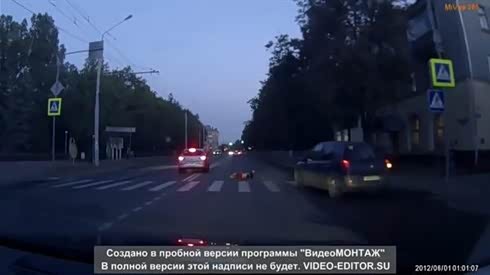 空中转体 实拍摩托司机闯红灯被撞飞