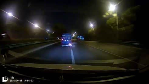 深夜惊魂 前车突然变线急刹车险酿追尾