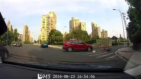惊险瞬间 SUV视觉盲区直接撞上自行车