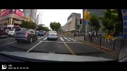 两败俱伤 实拍路口摄像车撞翻拐弯SUV