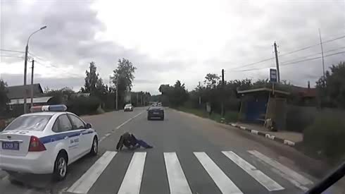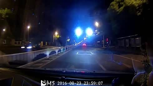 马路惊魂 深夜女子欲寻死险被摄像车撞