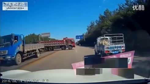 这掉头给零分 重型卡车失控险些撞车