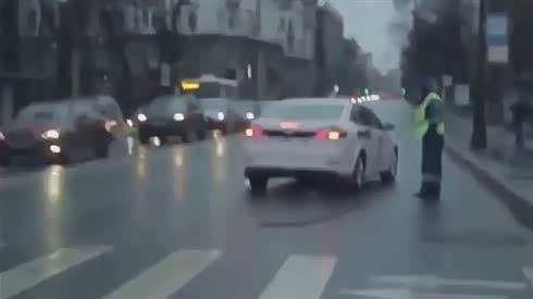 实在不理智 车头顶着交警疯狂驾车前行