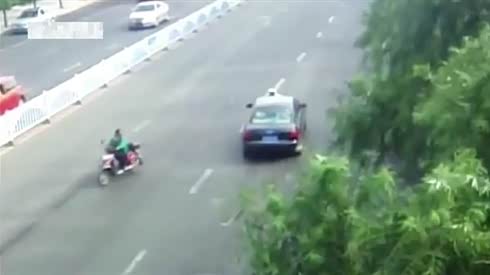司机头部受重创!摩托车惨遭后车追尾