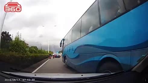 车身太长 实拍大客车超车剐蹭摄像车
