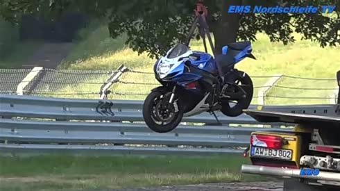 大意了!摩托车纽北过弯摔车被拖走