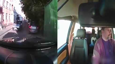 身轻如燕 看国外男子当街碰瓷摄像车