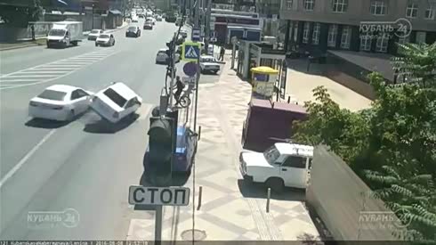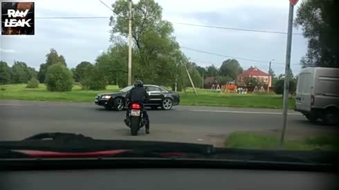 不忍直视 摩托车横穿公路被瞬间撞飞