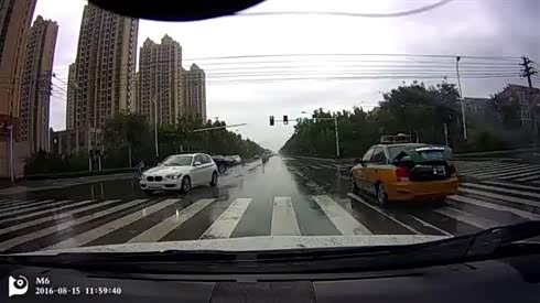 蔑视交规 出租车左转抢行被摄像车撞上