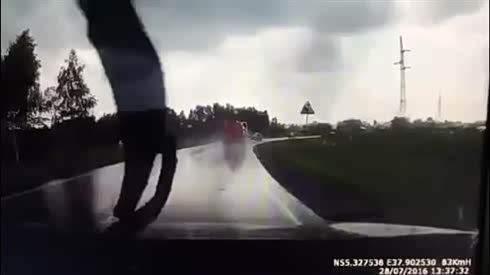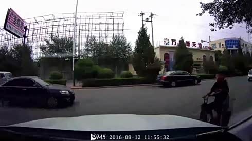 摔惨了 摩托车压线骑行遭遇轿车变道