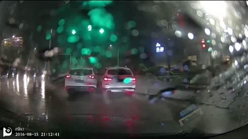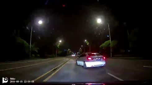 午夜惊魂 前车突然减速变道险致追尾