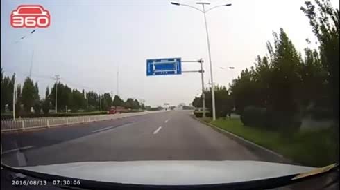 将对方挤下马路 货车拐弯开到对向车道
