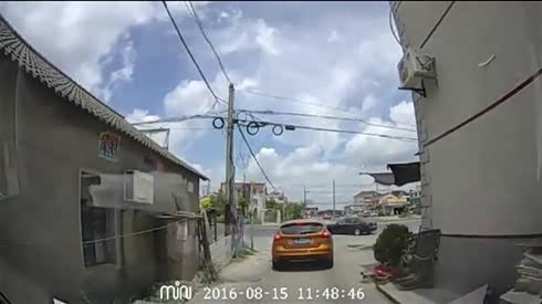 骂的真解气 摄像车过路口撞上抄近道车