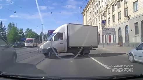谁碰上谁倒霉 大货车路口刹车不及撞车