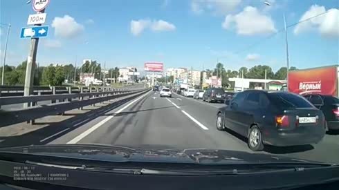 任性的代价 司机抢道驾驶不慎骑上护栏
