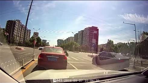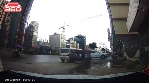 闯红灯惹的祸!电动车遭轿车猛烈撞击