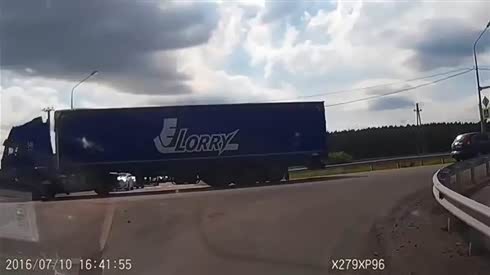 只能眼睁睁看着 实拍重载拖车陡坡溜车
