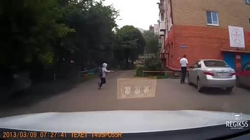 有惊无险 看熊孩子车前猛跑吓坏司机