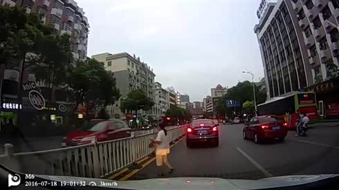 真是不顾后果 实拍老人公路翻越护栏