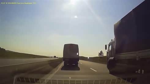 远离大货 摄像车遇货车盲区被挤出车道