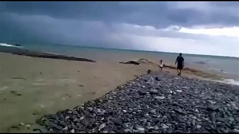 但愿里面没人!小轿车被海水冲进大海