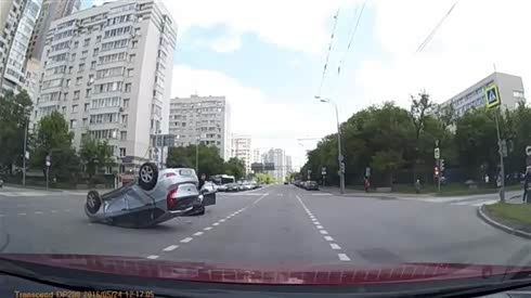 司机当场懵逼!实拍轿车被撞四脚朝天