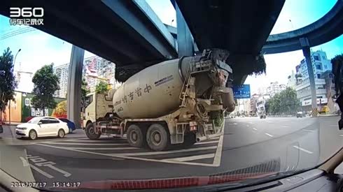 吓尿了!卡车逆行超车迎面对撞摄像车