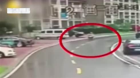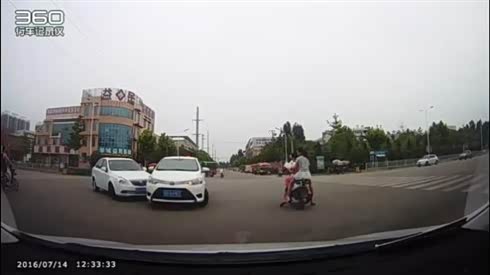 遭遇鬼探头 看比亚迪轿车撞倒自行车
