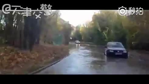 有勇无谋 车主驾车冲水坑无奈进水趴窝