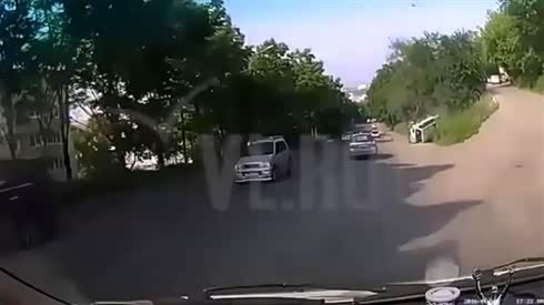 狭路相逢 实拍摄像车狭窄路段撞上摩托