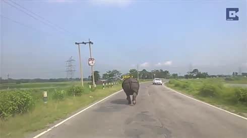 有不怕死的 看暴怒犀牛狂追躲闪的汽车