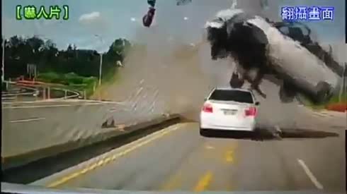 绝对吓傻了!失控车空中翻滚数圈落地