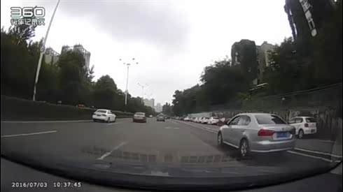 惊险一幕 超车道直行车躲车失控撞车