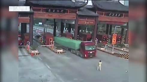 没拉手刹? 无人驾驶大卡车狂虐收费站