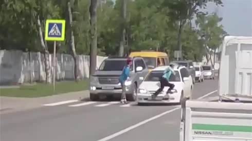 身手矫健 过马路男子被车撞幸无大碍