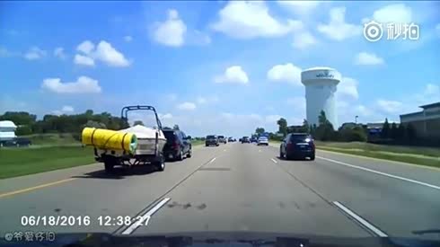 是祸躲不过 拖车掉落物品害惨后方摩托